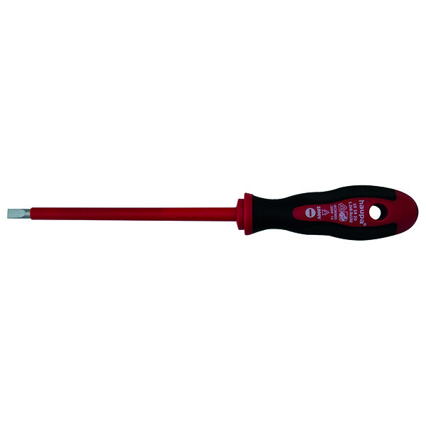 Отвертка оснащена двухкомпонентной рукояткой из полипропилена/термоэластопласта, закаленный и прошедший пескоструйную обработкустержень изготовлен из молибден-ванадиевой стали, каждая отверткапроверяется индивидуальноОтвертка для электромонтера (2K-VDE)