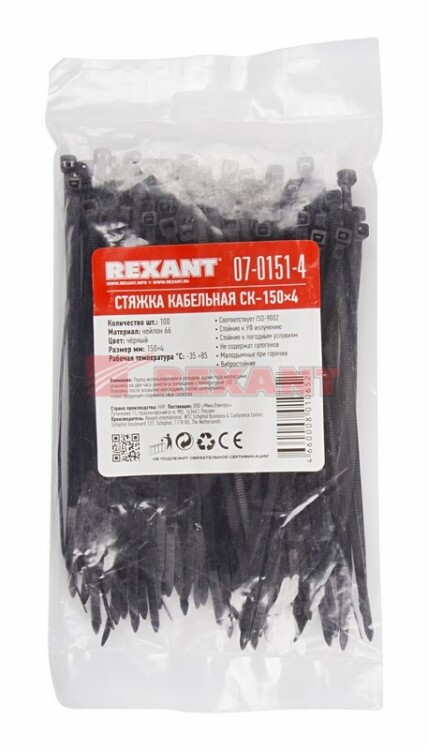 Хомут нейлоновый 3,6 х 150 мм, черный
