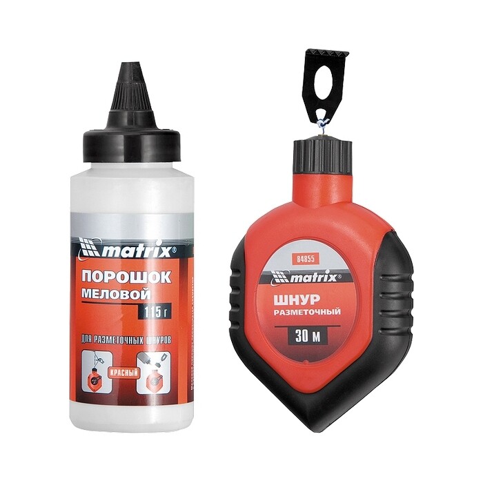 В набор входит разметочный шнур в пластмассовом обрезиненном корпусе и красный меловой порошок (флакон 115 г). Применяется для нанесения вертикальной и горизонтальной разметки при проведении строительных и отделочных работ.