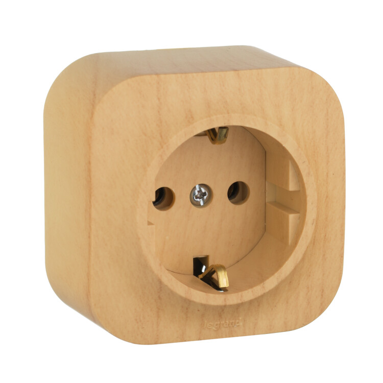 Розетка одноместная Legrand 782271 Quteo (16 А, IP20) открытой установки, с заземлением, дерево