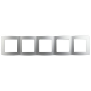 Рамка для выключателей и розеток 5-постовая горизонт. / вертик. серии Эра 12 цвет алюминий 12-5005-03. Сделана из поликарбоната. Используется только с механизмами серии Эра 12
