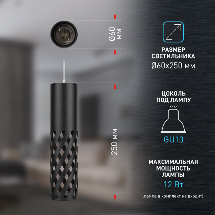 Подвесной светильник PL28 BK будет незаменим как на кухне в обеденной зоне, так и в спальне над прикроватными тумбами или туалетным столиком. Отлично подойдет для зонирования пространства. Корпус выполнен из металла. Шнур 1500 мм позволяет подвешивать светильник на максимальную длину. Светильники предназначены под светодиодную лампу MR-16 с цоколем GU10, напряжение питания 230В ~50/60Гц, мате риал металл, цвет светильника черный, размер 60х250мм, максимальная мощность лампы 12Вт, степень защиты IP20