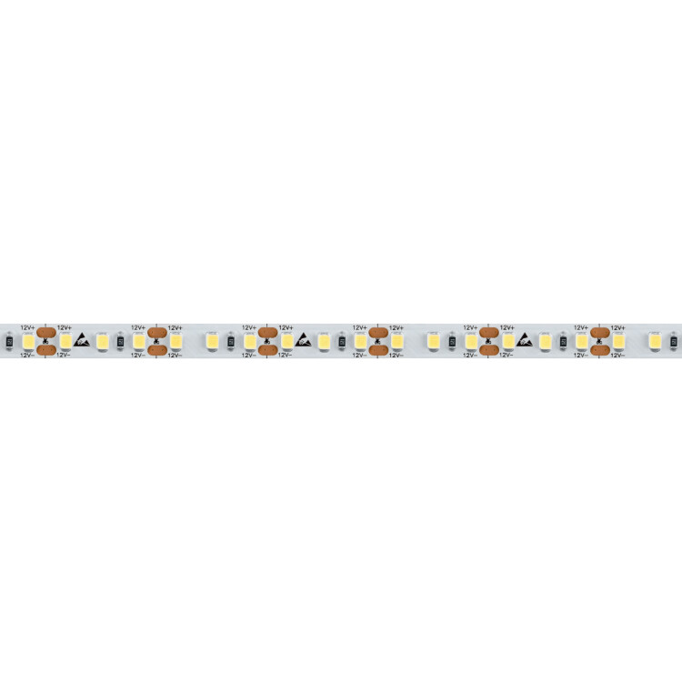 Светодиодная лент а RT серии A120. Светодиоды SMD 2835, 120 шт/м, белая плата шириной 8 мм, скотч 3M. Цвет ТЕПЛЫЙ 3000K, индекс цветопередачи CRI>85, угол 120°. Питание 12 В, мощность 14.4 Вт/м (72 Вт на 5 м). Размеры 5000x8x1.5 мм. Мин. отрезок 25 мм, 3 светодиода. Цена за 1 м. Обязательна установка на алюминиевый профиль. Кратность заказа поставщику: 5 м.