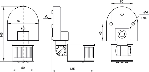 | Встроенные регуляторы | регулятор выдержки времени, регулятор порога чувствительности к инфракрасному излучению объекта, регулятор порога срабатывания в зависимости от уровня освещенности |