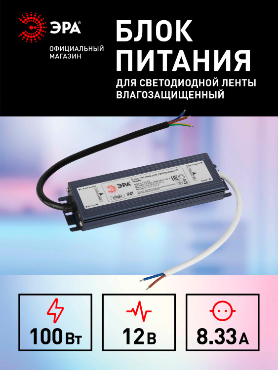 Блок питания 12В 100Вт IP67 ЭРА