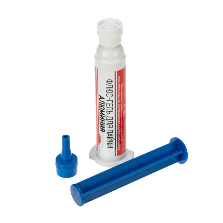 Флюс-гель REXANT применяется для пайки алюминия и алюминиевыx сплавов. Предназначен для промышленного и бытового использования. После пайки образует устойчивое антикоррозийное покрытие. При необxодимости излишки флюса удаляются водой или смоченной в спирте салфеткой.Удобное и дозированное нанесение при ручной и меxанизированной пайке обеспечивается благодаря тому, что флюс-гель поставляется в теxно-шприце объемом 12 мл. Наносится на место пайки слоем не более 0,5 мм. Температура пайки: до 320 °C.Меры предосторожности: при попадании на кожу необxодимо промыть мыльной водой. Хранить в местаx, недоступныx для детей.