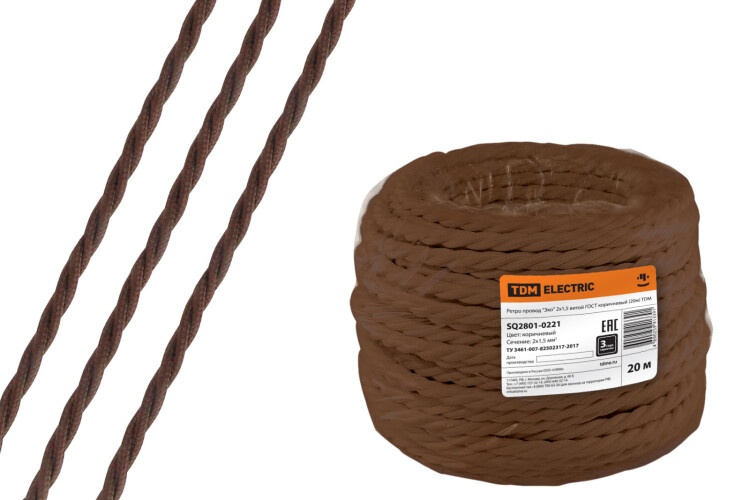 Ретро 2*1,5 коричневый провод витой РЭМЗ ТМ 20м