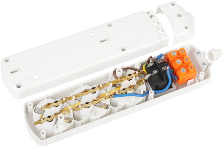 Колодка электрическая Эра K-3es с заземлением, с выключателем, 3 розетки. Корпус выполнен из ударопрочного и негорючего пластика. Рассчитана на максимальную мощность 16А / 3500 Вт и для подключения кабеля сечением до 1,5мм2. Электрическая колодка подойдет для тех, кто хочет сделать удлинитель самостоятельно. Также может использоваться как накладные розеточные блоке в подсобных помещени ях.