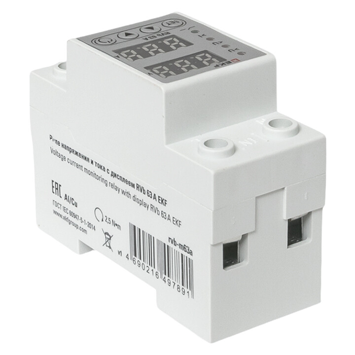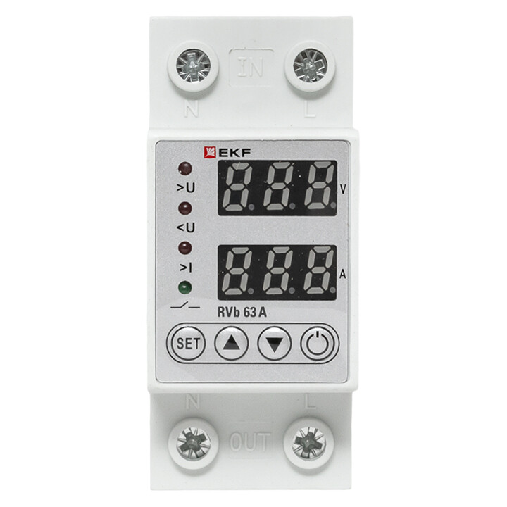 Цифровое реле напряжения и тока RVb предназначено для автоматического отключения подключенной через него нагрузки, если значение напряжения или тока в электросети выйдет за допустимые пределы. Прибор управляется микроконтроллером, который анализирует напряжение и ток в электросети и отображает текущие действующие значения на цифровых индикаторах. Коммутация нагрузки осуществляется электромагнитным реле. Допустимые пределы отключения напряжения, тока и время задержки включения устанавливаются пользователем с помощью кнопок. Значения сохраняются в энергонезависимой памяти.
