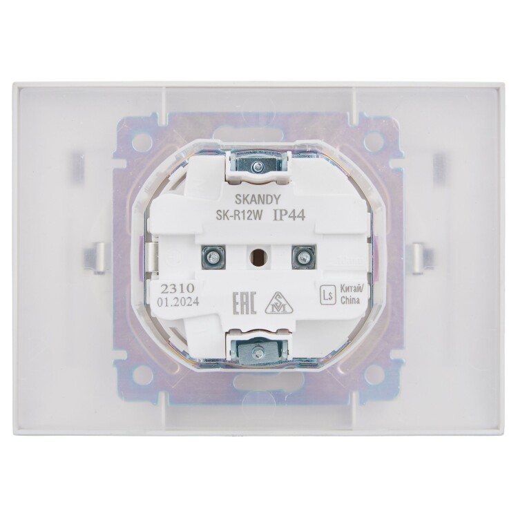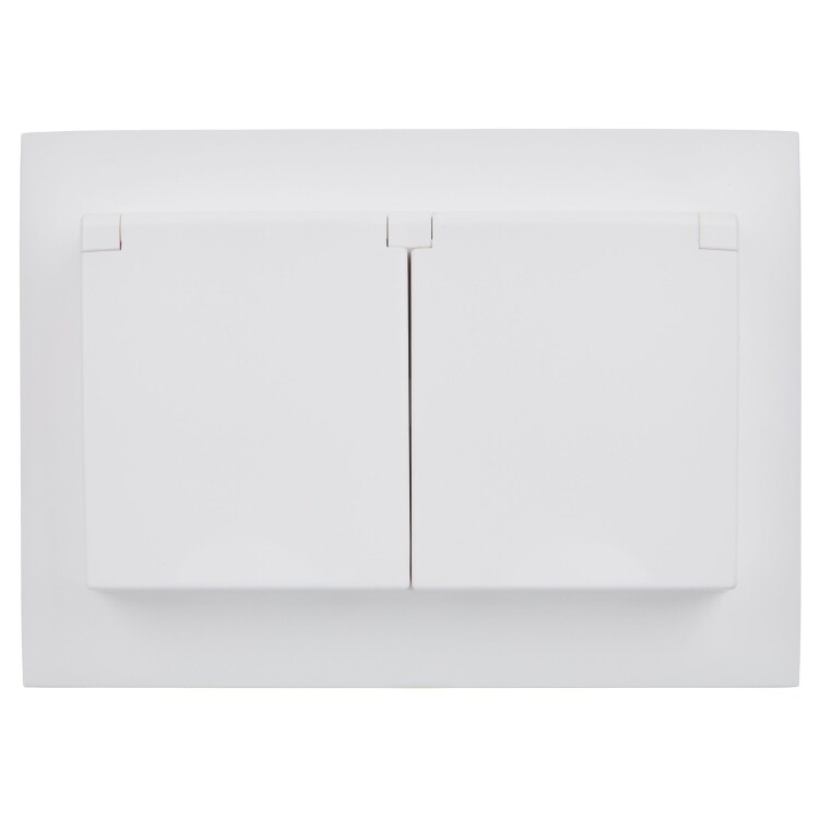 Розетка двухместная IEK SK-R12W Skandy (16 А, IP44) скрытой установки, с заземлением и шторками, с крышкой, в сборе, арктический белый