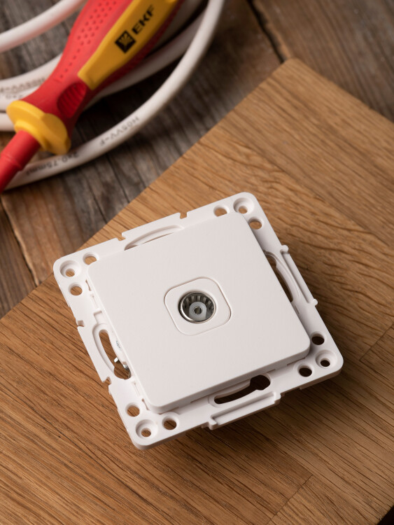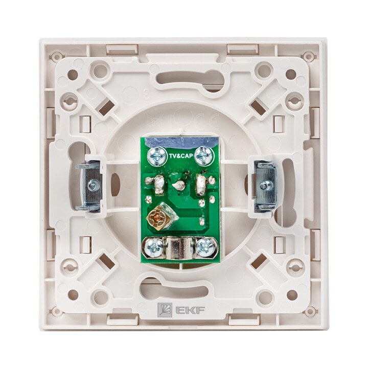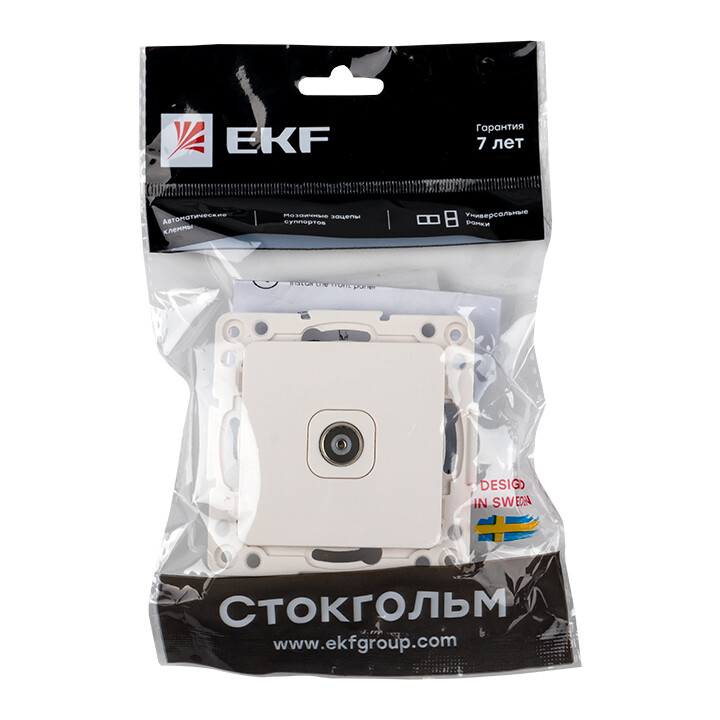 Розетка TV EKF серии Стокгольм станет отличным решением для стильного помещения при подключении устройств к телевизионной сети. Выполнена из поликарбоната, устойчивого к ультрафиолетовому излучению. Изделие необходимо дополнить рамкой.
