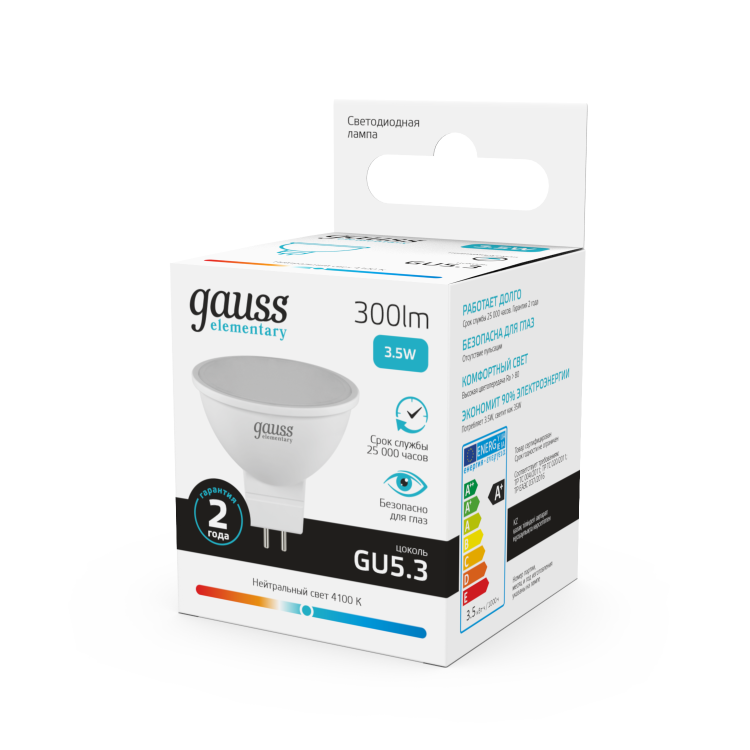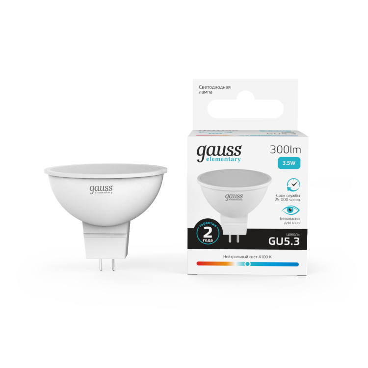 Лампа Gauss Elementary MR16 подарит вашему интерьеру привлекательные краски. Обеспечит достаточную яркость при минимальном расходе электроэнергии.