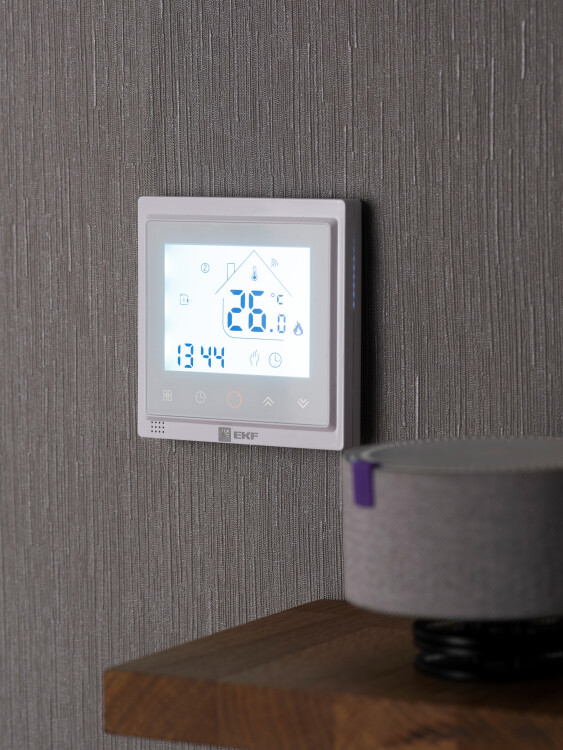 Умный термостат EKF Connect для электрического тёплого пола позволяет выставлять температуру как на самом устройстве, так и из приложения EKF Connect Home или через голосового помощника от Яндекса — Алису. Можно включать тёплый пол по расписанию. У термостата два датчика температуры: встроенный датчик температуры воздуха и выносной датчик температуры пола. Также есть функция антизамерзания, которая включит тёплый пол, если температура опустится ниже 5 градусов, и функция определения открытого окна, которая отключит тёплый пол на время проветривания, чтобы не тратить энергию зря. Умный термостат делает дом более комфортным и экономит электроэнергию.