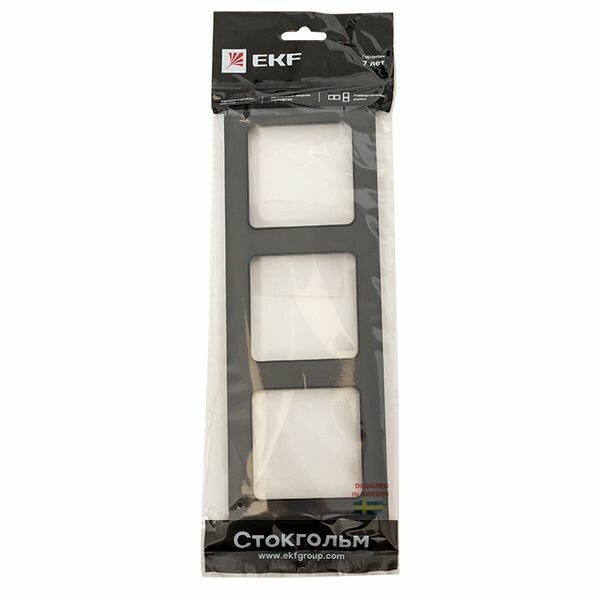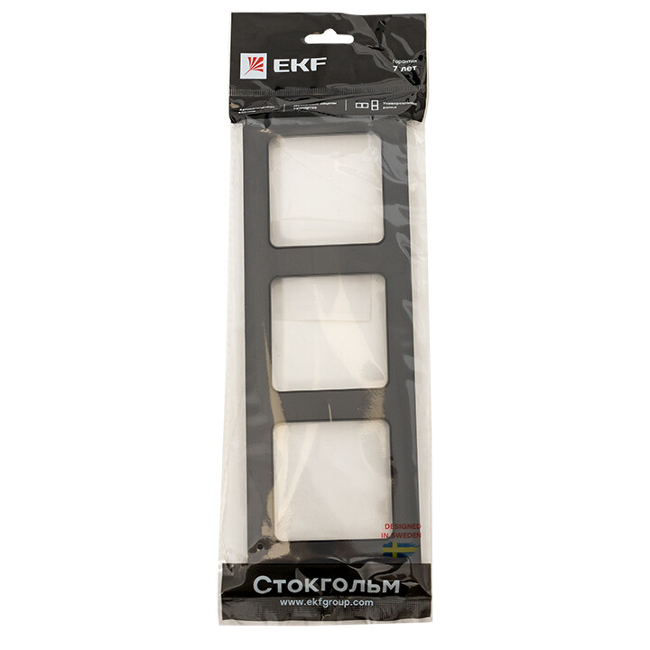 Рамка трехпостовая EKF серии Стокгольм станет отличным решением, чтобы вписать электроустановочное изделие в ваш интерьер. Выполнена из поликарбоната, устойчивого к ультрафиолетовому излучению.