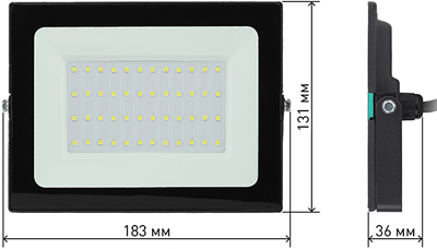Прожектор светодиодный LPR-021-0-65K-050 "Эра" Б0043564 (50 Вт, 4000 лм, 6500 К, IP65), черный