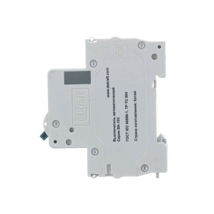 Автоматический выключатель серии ВА-103 NEW DEKraft; 1P; номинальный ток 32 А; характеристика C; отключающая способность 6 кА, что позволяет использовать аппараты в качестве вводных. 5 монолитных заклепок повышают прочность корпуса аппарата. Окошко-индикатор всегда показывает состояние контактов вне зависимости от положения рукоятки управления. Боковые каналы охлаждения повышают стабильность работы при высоких температурах окружающей среды. Есть возможность установки дополнительных аксессуаров с левой стороны устройства. Аппарат на 100% совместим с корпусами и оболочками DEKraft, Systeme Electric.