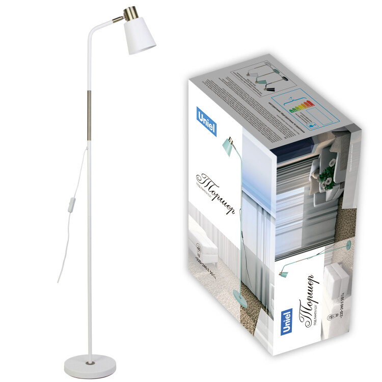 UML-T700 E27 WHITE Торшер напольный под лампу Е27, 40W, с регулировкой наклона. Механический выключатель. Белый. ТМ Uniel