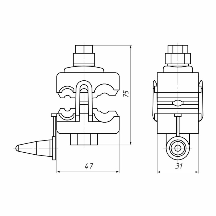 Предназначен для соединения неизолированных алюминиевых проводов с СИП. Зажимы применяются для подключения проводов ввода в дом, зарядных проводов светильников наружного освещения и т.п. При затягивании болта его острые элементы прокалывают изоляцию, создавая соединение. Когда достигается необходимое усилие, головка болта срывается, предотвращая перетяжку и повреждение провода. Срывная головка металлическая. Не требует использования специализированного инструмента. Контактные пластины изготовлены из алюминиевого сплава, обеспечивают хорошую проводимость и совместимость с алюминиевыми проводами. Прокалывающие элементы покрыты токопроводящей смазкой для снижения переходного сопротивления и защиты от окисления. Зажим устойчив к ультрафиолету, перепадам температур (от -60°С до +50°С), коррозии и агрессивным атмосферным воздействиям.
