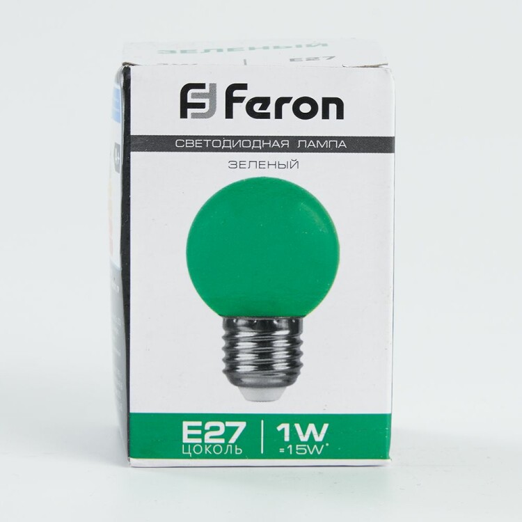 Лампа светодиодная FERON LB-37, G45 (шар), 1W 230V E27 (зеленый), рассеиватель матовый зеленый, угол рассеивания 270°, 70*45мм