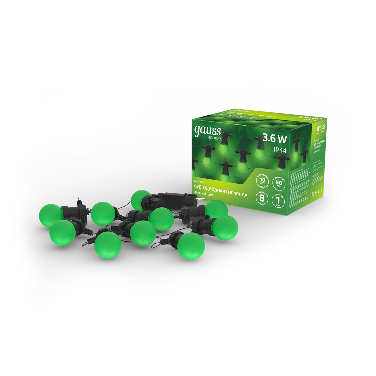 10 ламп насыщенного ярко-зеленого цвета создадут ощущение свежести и positives, наполнят пространство атмосферой веселья и радости.