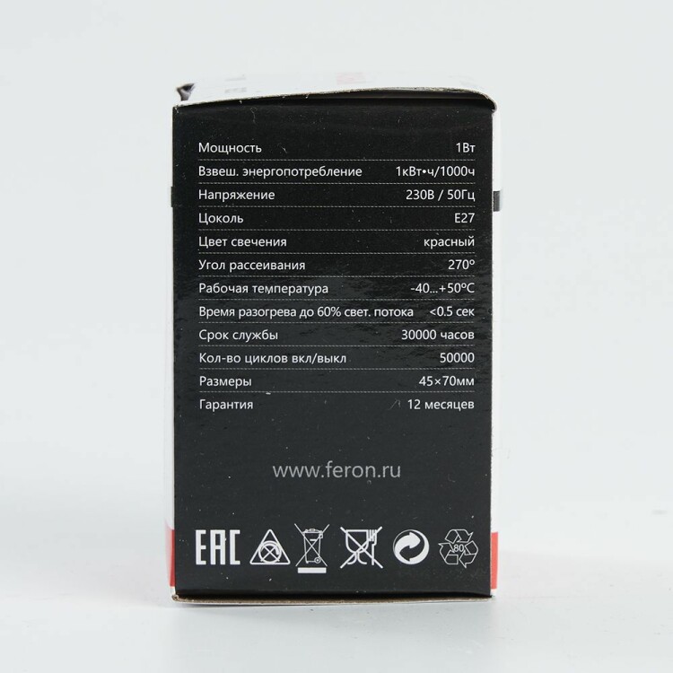 Лампа свд 220В E27 1Вт шар красная белтлайт Feron