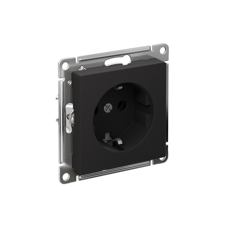 Механизм с быстрозажимными клеммами Systeme Electric (ранее Schneider Electric) серии AtlasDesign в цвете карбон розетки одинарной с заземлением, без шторок подходит для сетей 250 В, на ток 16 А. С помощью новых быстрозажимных клемм монтаж розеток и выключателей стал намного быстрее. Теперь подключение не требует использования отвертки.