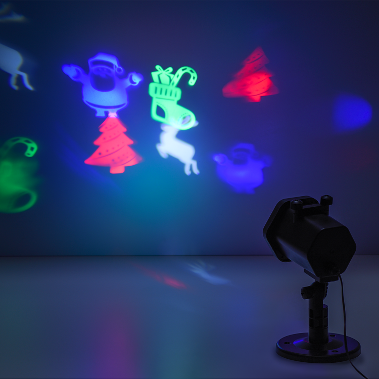 Лазерный проектор «4 картинки» подходит для тех, кто любит устраивать оригинальные тематические вечеринки. Новогодний проектор с изображением Деда мороза, оленя, носка с подарками и ели создаст оригинальный новогодний элемент декора, созданный для освещения праздника. Готовое решение будет отображаться на любой поверхности, превращая ваш дом в страну чудес. Плавная скорость вращения каждой картинки украсит зимнюю вечеринку. Идеально решение для праздничного уличного оформления дома, а также для использования в помещении. Светильник работает на расстоянии до 3-х метров.