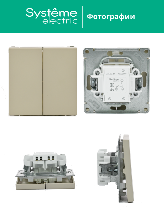 Выключатель двухклавишный Systeme Electric GAL001251 ArtGallery (10 А, IP20) скрытой установки, песочный