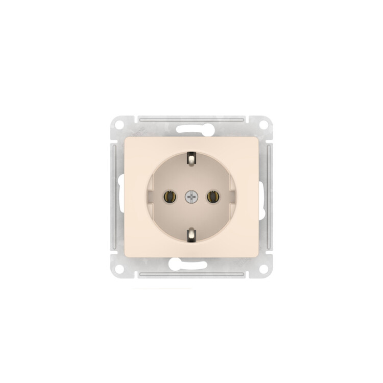 Механизм с быстрозажимными клеммами Systeme Electric (ранее Schneider Electric) серии Glossa (цвет бежевый) розетки с заз емлением подходит для сетей 250 В, на ток 16 А. С помощью новых быстрозажимных клемм монтаж розеток и выключателей стал намного быстрее. Теперь подключение не требует использования отвертки. Выполнен из материала PС+ASA, стойкого к УФ-излучению и появлению царапин.