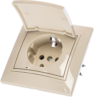 Розетка одноместная Lezard 701-0303-123 Mira (16 А, IP20) скрытой установки, с заземлением, с крышкой, кремовый