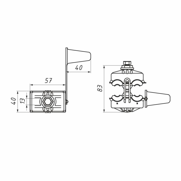 Предназначен для ответвлений от магистрального провода марки СИП-2 или СИП-4 медными или алюминиевыми проводами. Надежный электрический контакт обеспечивается методом прокалывания изоляции жил проводов магистрали и ответвления. Зажимы применяются для подключения уличного освещения, проводов абонента, ввода в дом, прочих ответвлений от магистральной ВЛИ. Прокалывающие зубья контактных пластин зажимов имеют пирамидальную форму, благодаря этому достигается быстрый электрический контакт и надежная герметизация зажимов. Контактные пластины изготовлены из алюминиевого сплава, обеспечивают хорошую проводимость и совместимость с алюминиевыми и медными проводами. Конструкция ответвительных зажимов обеспечивает минимальную потерю механической прочности фазного и нулевого проводов. Зажимы данного типа можно монтировать на линии под напряжением. Прокалывающие элементы покрыты токопроводящей смазкой для снижения переходного сопротивления и защиты от окисления. Зажим устойчив к ультрафиолету, перепадам температур (от -60°С до +50°С), коррозии и агрессивным атмосферным воздействиям.