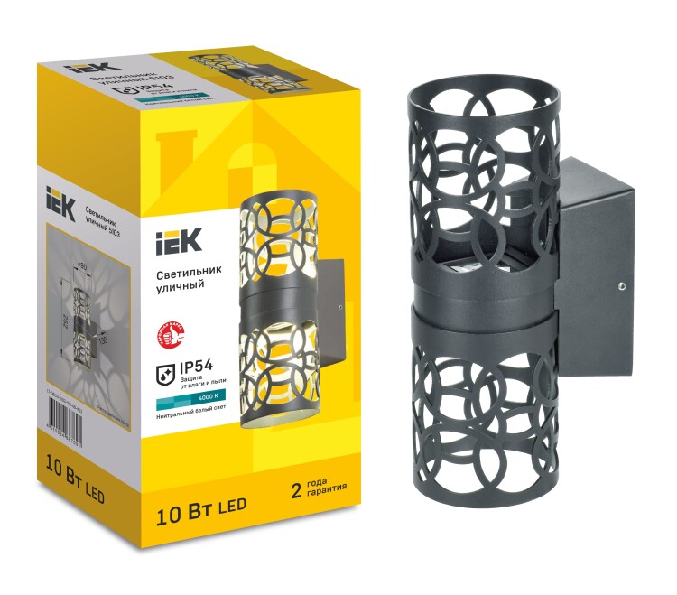 Серии уличных декоративных светильников IEK® 5102 и 5103 предназначены для использования вне помещения. Благодаря повышенному индексу пылевлагозащиты IP54, этим светильникам не страшен пыльный ветер, знойная жара или брызги любого характера. Цвета исполнения корпуса: черный и серый. Надежное порошковое окрашивание позволяет обработать даже труднодоступные участки. Это предотвращает образование ржавчины и делает поверхность особенно стойкой к механическим повреждениям. Настенные модели дарят игру света и фантазийный световой рисунок. Дизайнеры рекомендуют эти модели к использованию в инсталляциях и в помещении.