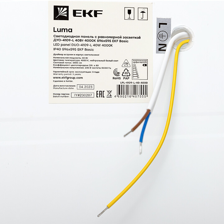Светильник ДВО/ДПО 4000К опал 40Вт 4000лм 595*595*25мм белый IP40 4109 EKF равномерная засветка