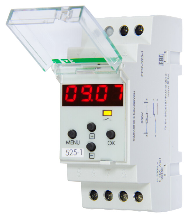 Реле времени программируемое циклическое предназначено для включения-выключения освещения в моменты захода и восхода солнца в зависимости от географических координат местности и времени года. Возможна корректировка времени включения-выключения в пределах 199 минут, ночной перерыв, одноканальное, астрономическое, коррекция времени включения/выключения, 24-264В AC/DC 16А 1NO/NC IP20 Евроавтоматика ФиФ