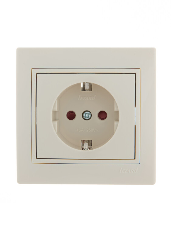 Розетка одноместная Lezard 701-0303-124 Mira (16 А, IP20) скрытой установки, с заземлением, с защитными шторками, кремовый