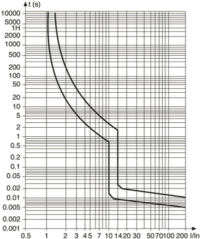 Характеристика срабатывания (кривая отключения) отражает порог срабатывания при защите от короткого замыкания.