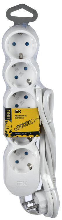 Удлинитель трехместный У03К IEK WYP10-16-03-05-ZK-N (ПВС 3 х 1,0 кв.мм, выключатель со световой индикацией), белый, 5 м