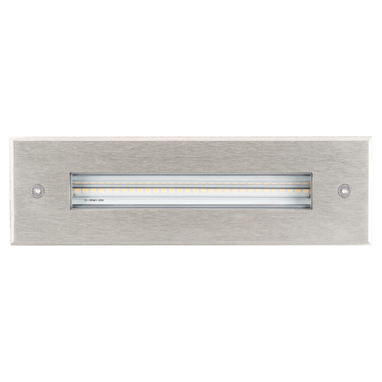 Встраиваемый светодиодный светильник для грунта и пола. Мощность 8Вт, световой поток 430лм, цвет ТЕПЛЫЙ 3000К. CRI(Ra)>80, угол 120° асимметричный, наклон луча 30°. Прямоугольный влагозащищенный корпус IP67, нержавеющая сталь 316. Экран закалённое стекло. Питание 230В, 8Вт. Размер ДxШxВ 210x63x78мм. Установка в отверстие ДxШxВ 190x56x75мм. Встроенный драйвер (DC300mA, 18V).