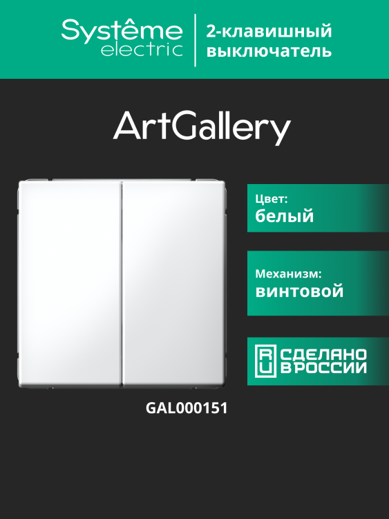 Выключатель двухклавишный Systeme Electric GAL000151 ArtGallery (10 А, IP20) скрытой установки, белый