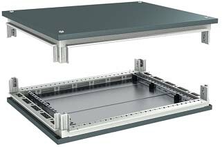 Комплект "К рыша и основание" используется для сборки корпуса. В комплект входит основание, крыша, монтажные аксессуары, изделия для организации кабельного ввода, направляющие для монтажнйо платы, крепежные элементы. Материал - сталь толщиной 1,5 мм с порошковым покрытием RAL7035.