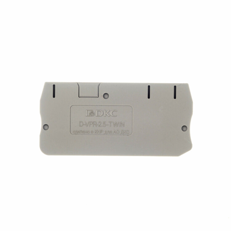 Изолятор торцевой предназначен для защиты и закрытия токоведущие части клеммы. Фиксируется на клеммах с Push-in зажимом VPR-2.5-TWIN. Устанавливается в конце клеммного ряда и также может использоваться для визуального разделения сегментов клеммного ряда. Серый цвет, толщина 2,2 мм.