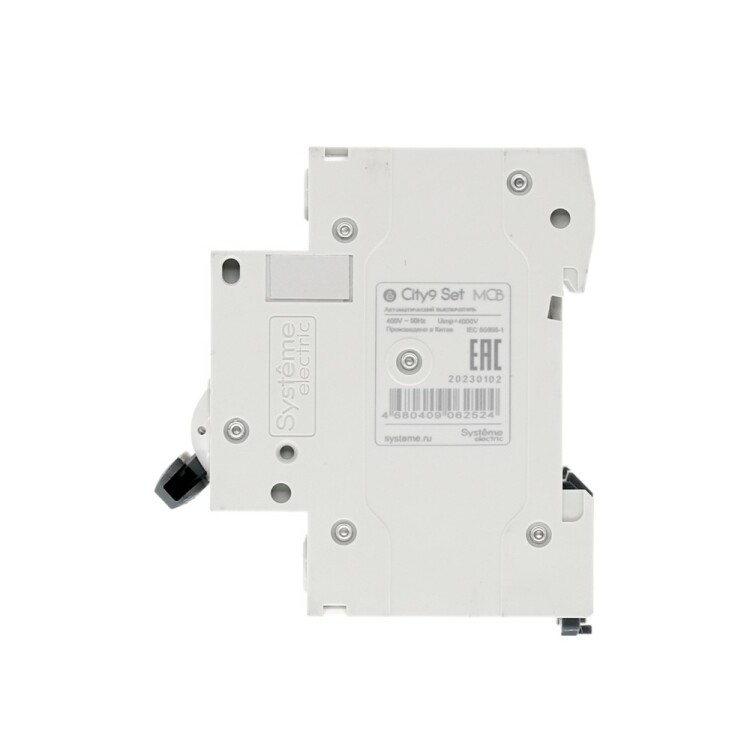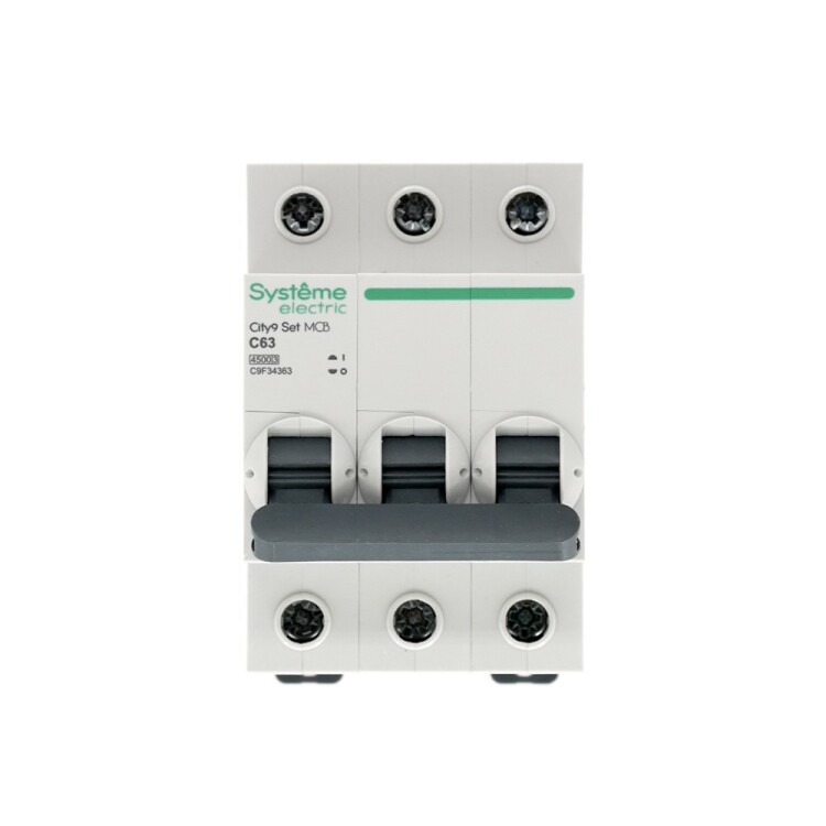 Автоматический выключатель серии City9 Set Systeme Electric, 3-полюсный, номинальный ток 63 А, характеристика С, Icn = 4.5 кА. Примен яется в электрических сетях напряжением 400 В. Предназначен для защиты от перегрузок и токов короткого замыкания. Оснащен механизмом «мгновенной коммутации». Ударопрочный корпус из специального пластика с 6 металлическими заклепками. Безопасные клеммы исключают попадание кабелей в заклеммное пространство (ранее Schneider Electric Easy9 EZ9F34363).
