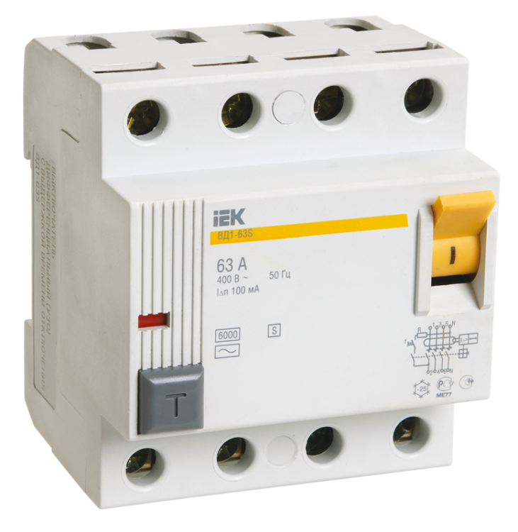 Выключатели автоматические, управляемые дифференциальным током, без встроенной защиты от сверхтоков, функционально не зависящие от напряжения сети, бытового или аналогичного применения с выдержкой времени отключения типа ВД1-63S предназначены для автоматического отключения питания, в случае возникновения дифференциальных токов утечки, в однофазных и трехфазных электрических сетях переменного тока номинальным напряжением до 400В.