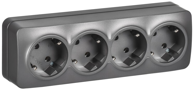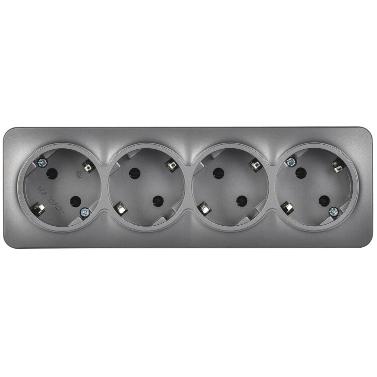 Розетка четырехместная IEK РС24-3-ХСм Glory (16 А, IP20) открытой установки, с заземлением, сталь матовый