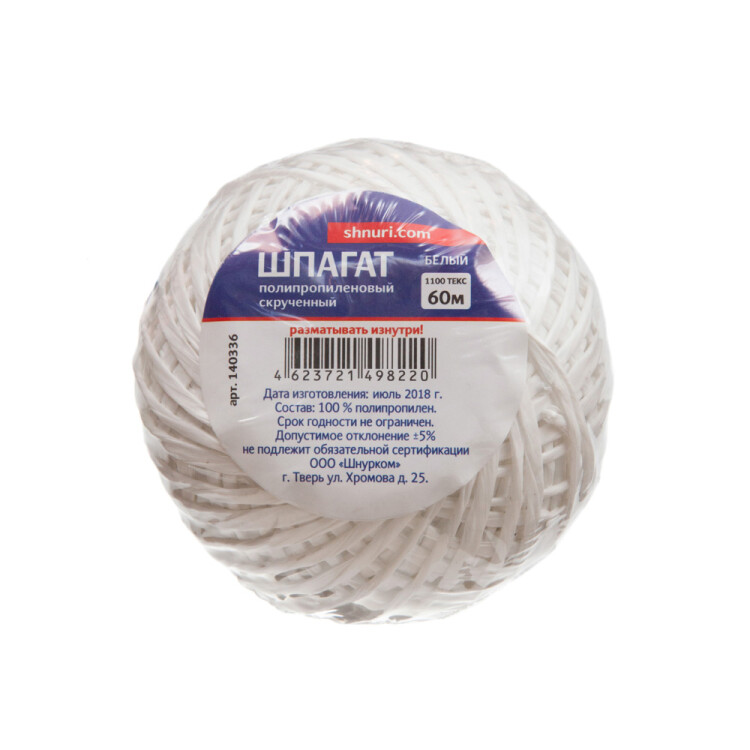 Шпагат полипропиленовый 1000Текс белый 60 м