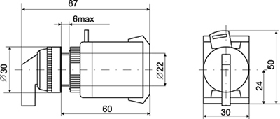 Переключатель ALC-22 на два фиксированных положения I-O предназначен для переключения отдельных электрических цепей переменного тока напряжением до 660 В частотой 50 Гц или постоянного тока напряжением до 440 В.