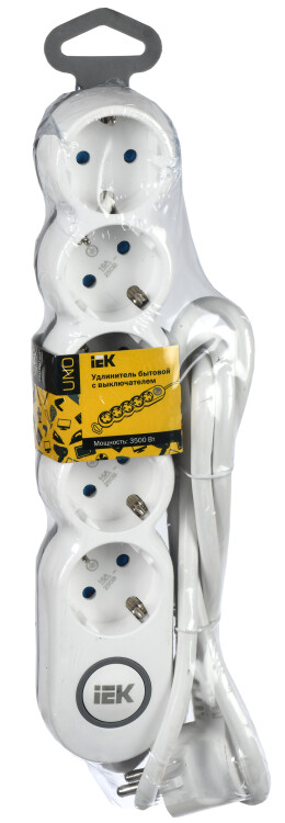 Удлинитель 5-мест 3м ПВС 3*1,5 белый выкл IEK UNO