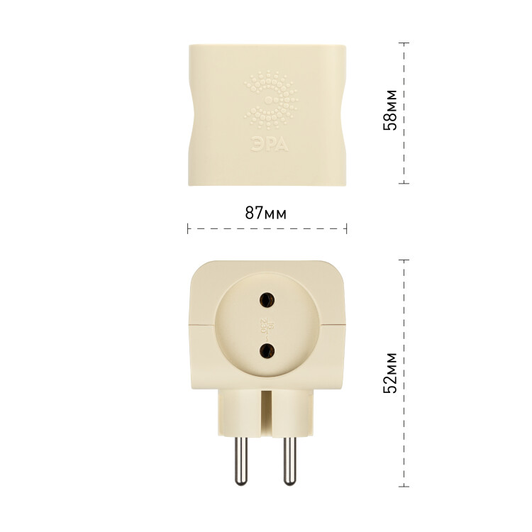 Разветвитель электрический Эра SP-4-I без заземления, 4 розетки, слоновая кость. Если в Вашем доме недостаточно розето к, чтобы одновременно подключить несколько электроприборов, то тройник марки Эра станет Вашим надежным помощником. Электрический разветвитель расчитан на максимальную мощность 16А/3500Вт. Корпус выполнен из ударопрочного и негорючего пластика (поликарбонат). Модель тройника на 16А позволяет подключить мощные бытовые приборы общей нагрузкой до 3500Вт. Не бойтесь включить чайник, обогреватель или микроволновку. Дизайн разработан в России командой Эра Style.