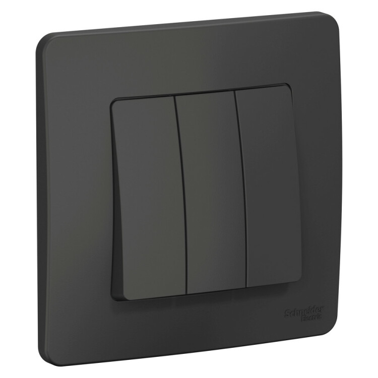 Выключатель Systeme Electric (ранее Schneider Electric) BLANCA (антрацит, скрытой установки) трехклавишный предназначен для сетей до 250В, на ток до 10А. Трехклавишный выключатель позволяет управлять тремя источниками света из одной точки. Он изготовлен из ABS-пластика, прост в установке и удобен в применении.
