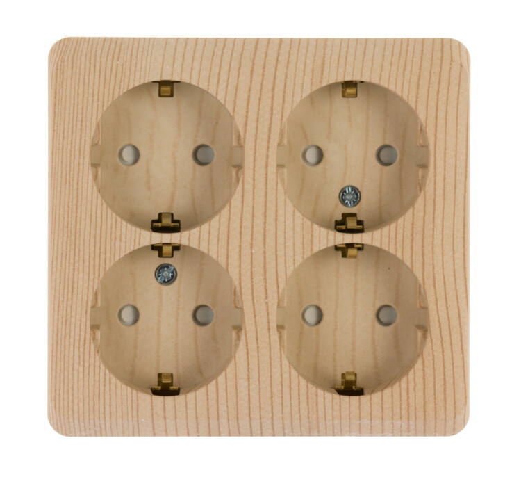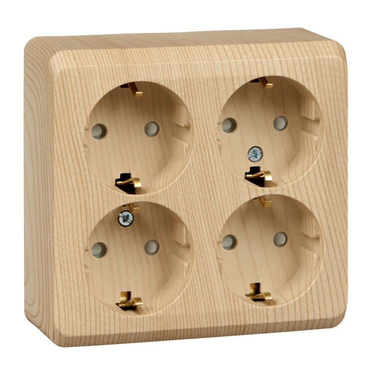 Розетка четырехместная Schneider Electric PA16-208D "Этюд" (16 А, IP20) открытой установки, с заземлением и защитными шторками, сосна